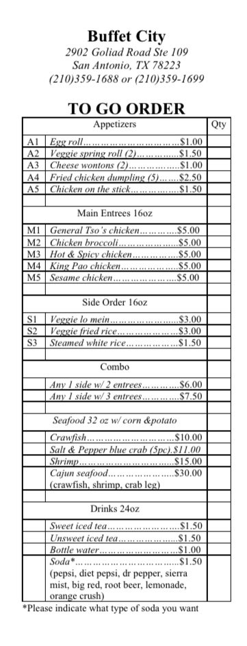 Buffet City TX Menu